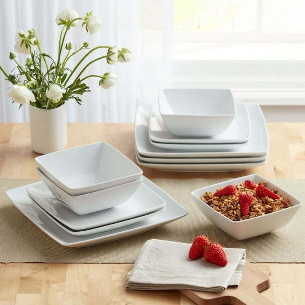 Better Homes & Gardens- Loden White Square Porcelain 12-Piece Dinnerware Set