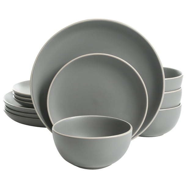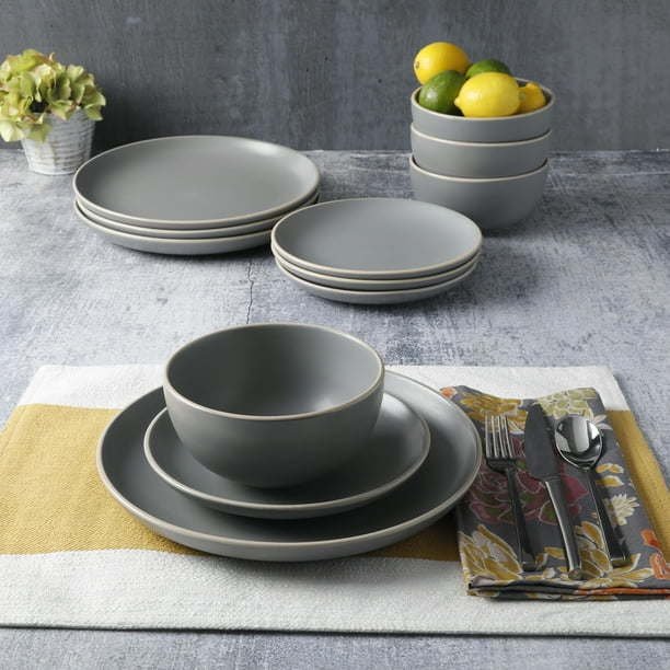 Better Homes and Gardens Zuri 12-Piece Grey Dinnerware Set