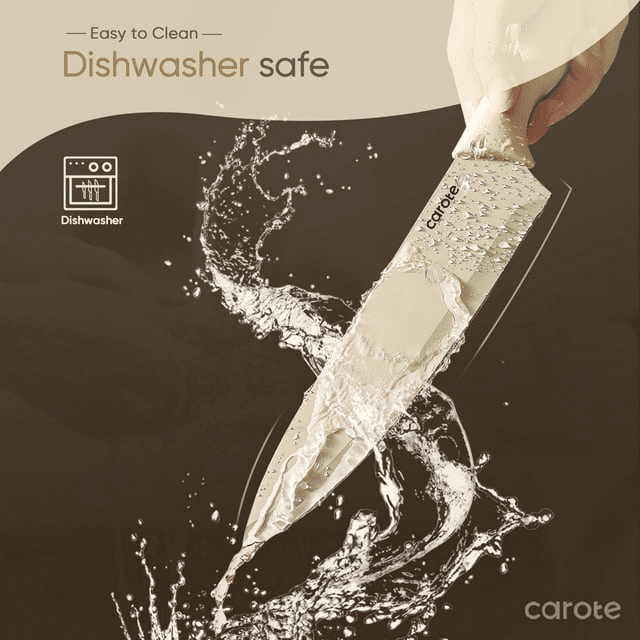 Home > CAROTE 12 Pieces Kitchen Knife Set, Stainless Steel Knife Set With Nonstick Creamic Coating,Dishwasher Safe with 6 Blade Guards,Anti-Rust,Brown