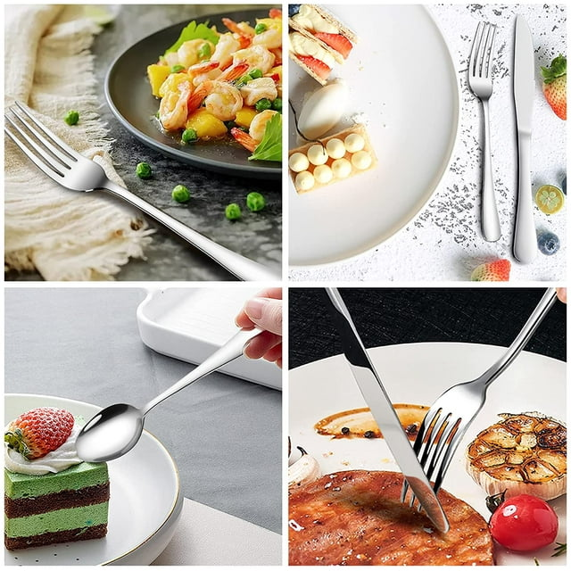 [modern silverware design] highly mirror polished makes these eating utensils always keep shiny, matches well with your existing flatware, smooth surface convenient to hand wash and dishwasher safe, proper thickness and nice size ensures great hand feel, elevate your everyday meals into a fine dining experience.