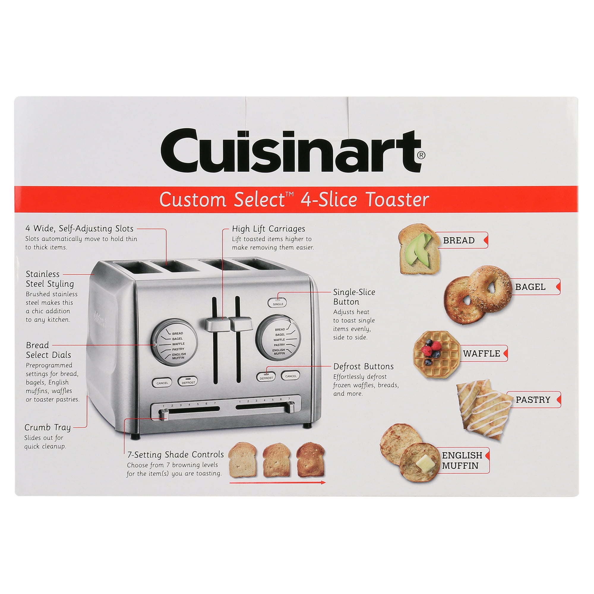 Function and fashion come together to deliver the best in style and performance. This sleek, stainless steel Cuisinart Toasters 4 Slice Toaster, New, CPT-640P1 is designed to accommodate all types of bread selections and shade preferences. High-lift carriages, generous slots and precision settings, make these the toasters everyone will want to trade up to!