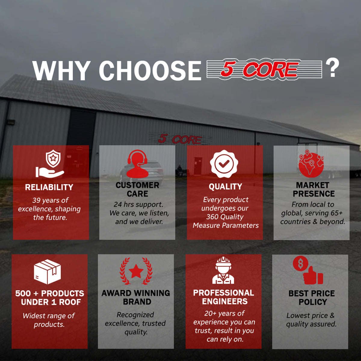 5 Core, ISO Certified headquartered in California, warehouse in Ohio, USA. Offering 600+ products since 1984. Tested and Certified Products, ensuring highest quality and reliability.