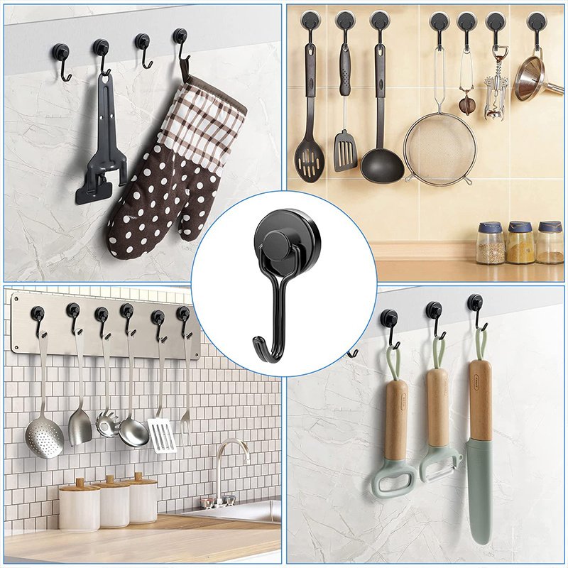 Home > 4/8/10pcs Magnetic Hook Powerful Heavy Duty Neodymium Magnet Hook Home Refrigerator Grill Kitchen Key Holder Black Multi-Purpose