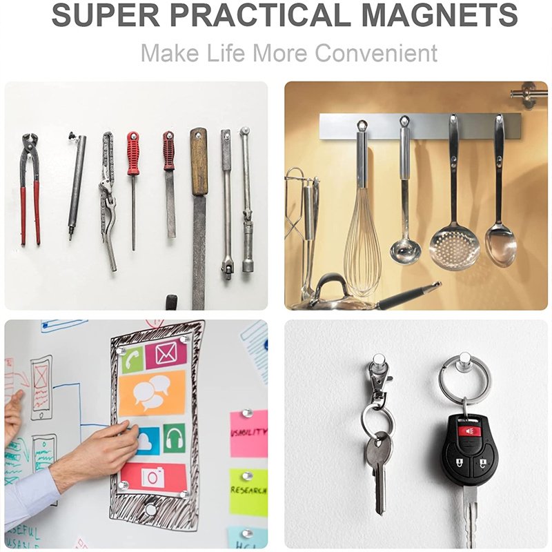 GET ORGANIZED - These strong magnets can be used in many ways to organize your hectic life. They make perfect kitchen magnets to hang measuring spoons; strainers and other kitchen utensils. You can use these little magnets to hang your keys; jewelry or glasses. Our metal magnetic pins are also handy in the garage or shed for organizing your tools.