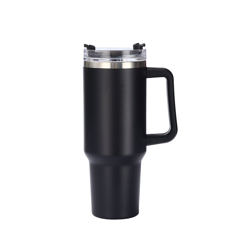 40oz High-end High Capacity Car Travel Kettle Double Insulated Thermos Cup Lid and Straw Stainless Steel Coffee Sippy Cup! New Large Capacity 40oz Mug Portable Handle Vacuum Stainless Steel Beer Mug Double Layer Car Coffee Mug Travel Water Mug When it comes to hitting your daily hydration goals; go big with our 40oz Quencher Travel Tumbler. Studio workouts; long commutes; weekend getaways—this one is a game changer. Double-wall vacuum insulation will keep water cold for hours and hours; no need for constant refills. The lid features a rotating cover with three positions: an opening for the reusable straw; an opening for sipping; and a full-cover top to prevent splashes. Complete with a comfortable; ergonomic handle for carrying. Generously sized and beautifully styled; make this one your everyday hydration accessory.