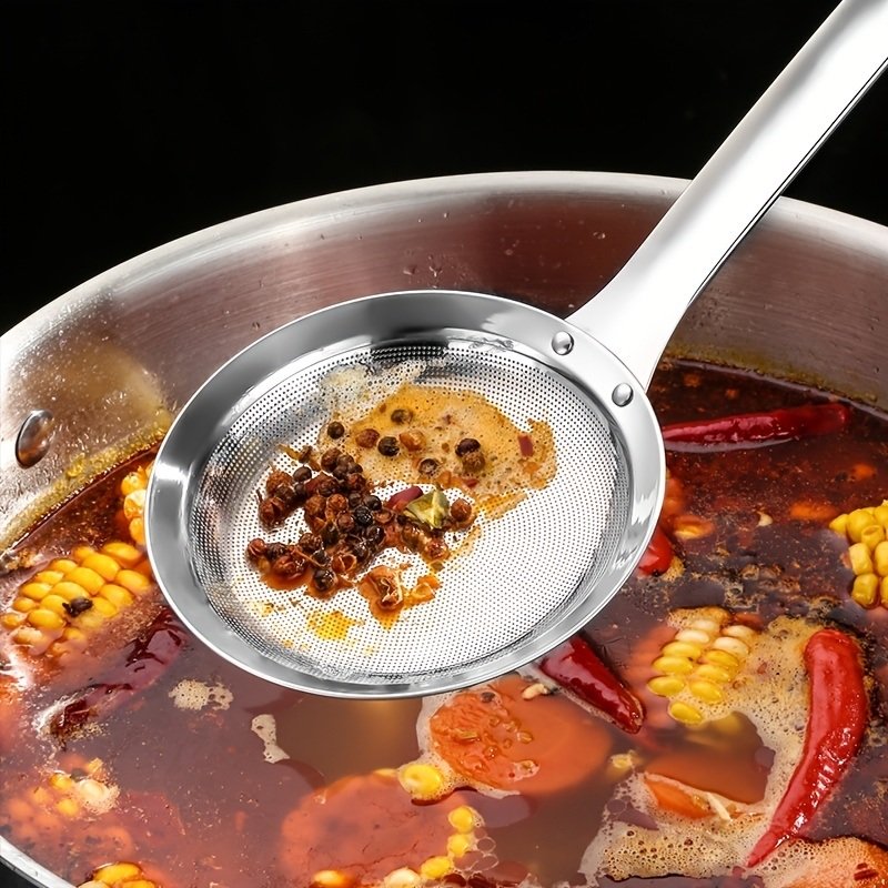 Home > 1pc 304 Stainless Steel Fat Skimmer Spoon; Fine Mesh Food Strainer For Grease; Gravy And Foam; Multi-functional Filter Spoon Fine Mesh Wire Oil Skimme