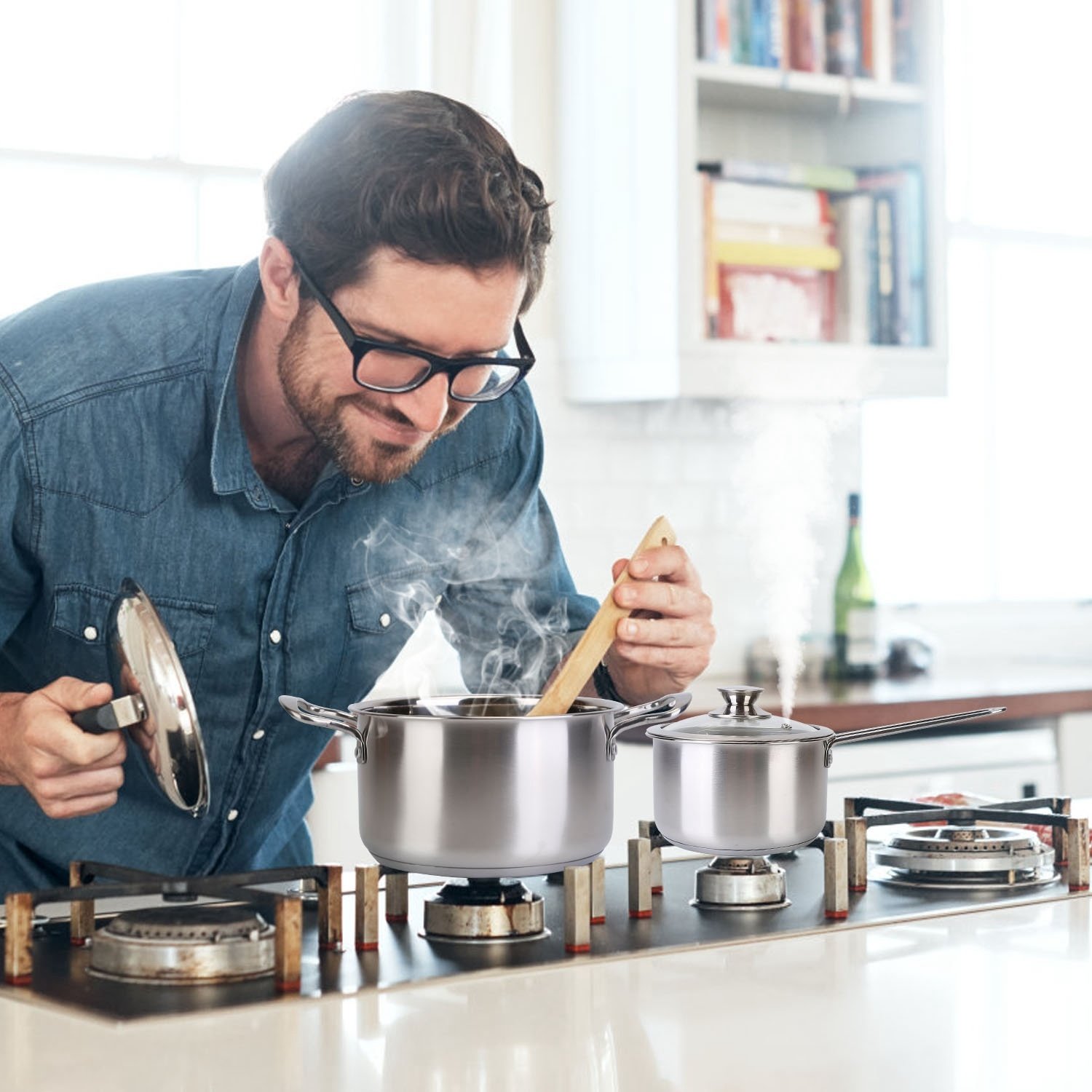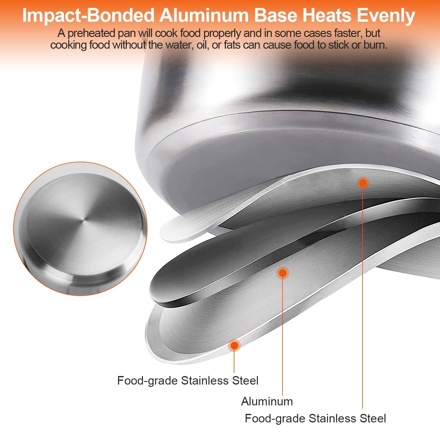 **Food Grade Cookware*:Made of premium food grade stainless steel and tempered glass lid materials; which maintains the flavor of the food. 3-Layer bottom with impact-bonded technology; built to last for a life time.