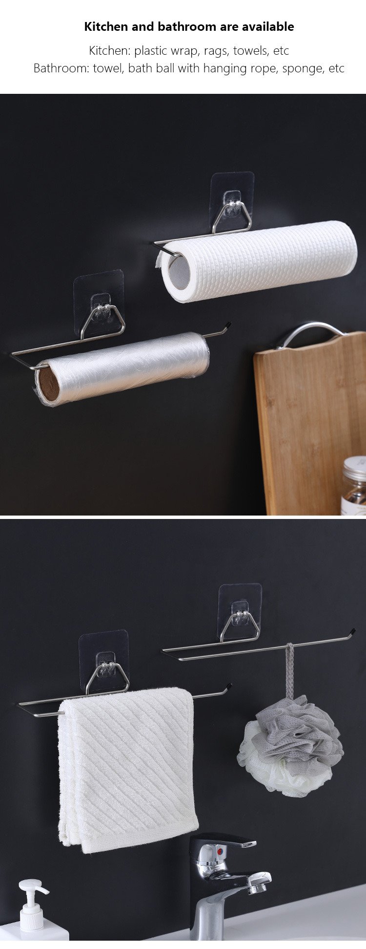 Home > Stainless Steel Punch-Free Kitchen Bathroom Roll Paper Towel Rack Iron Rack Lazy Rag Bracket