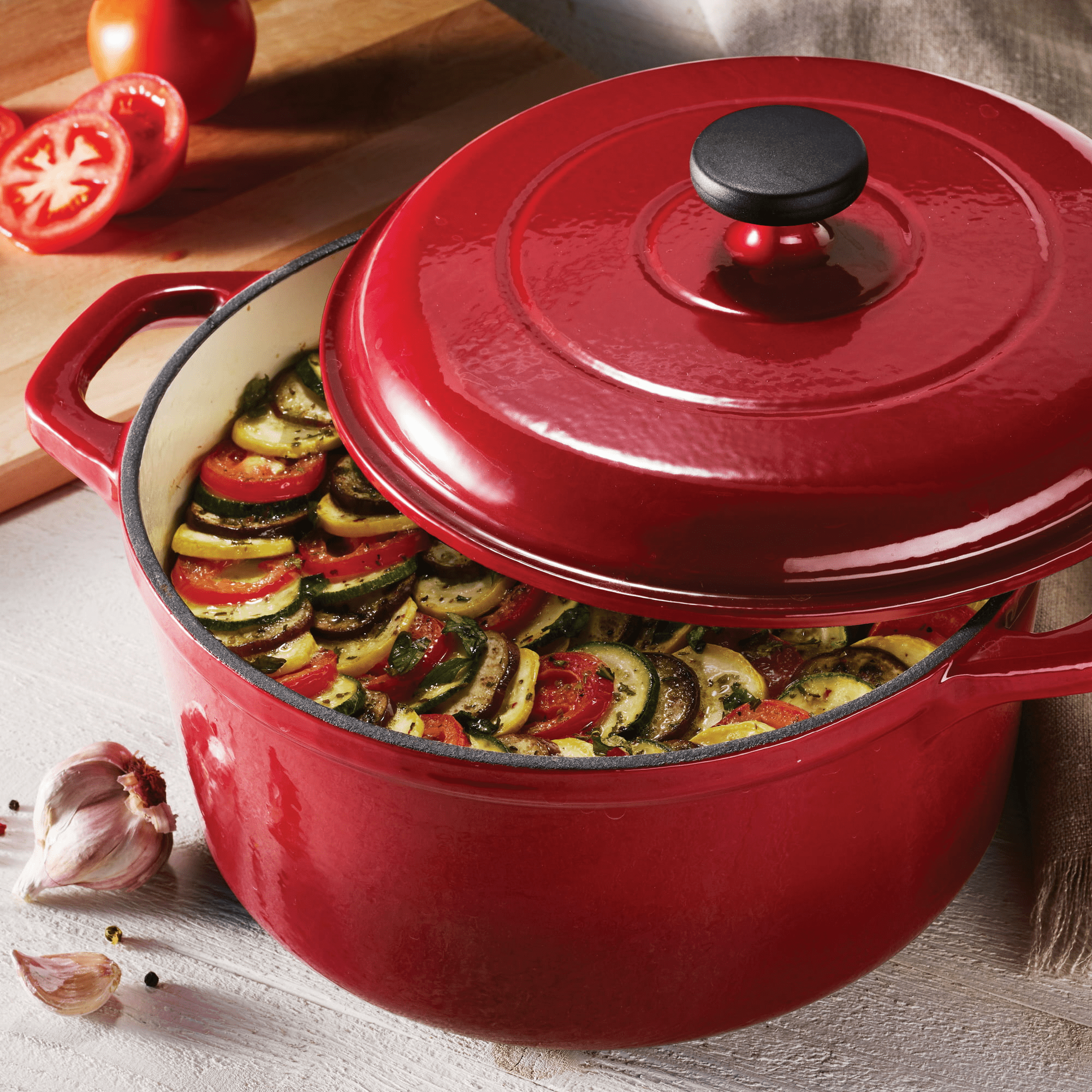 Tramontina Enameled Cast Iron 6.5 Quart Round Dutch Oven, Red Tramontina Enameled Cast Iron 6.5 Quart Round Dutch Oven, Red Tramontina Enameled Cast Iron 6.5 Quart Round Dutch Oven, Red